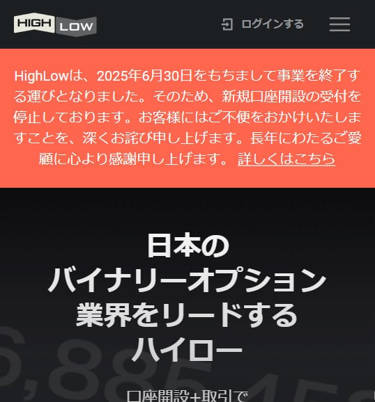 2025年5月1日のアナウンスにより、長年に渡り海外バイナリーオプション業界のトップを走り続けてきたハイローオーストラリアが2025年6月30日をもち事業撤退することが発表されました。